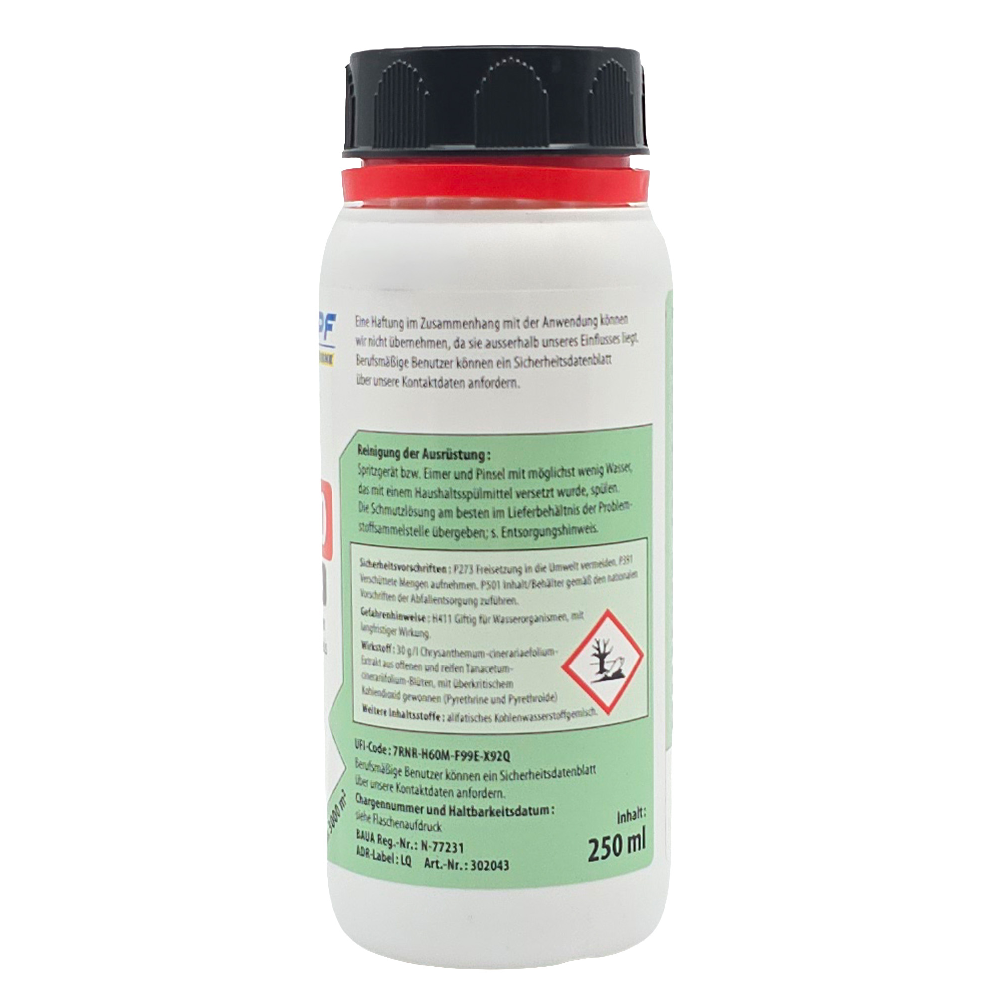 Rückenspritze: 250 ml/Bio 3000 + 5 l Wasser für ca. 350 m²