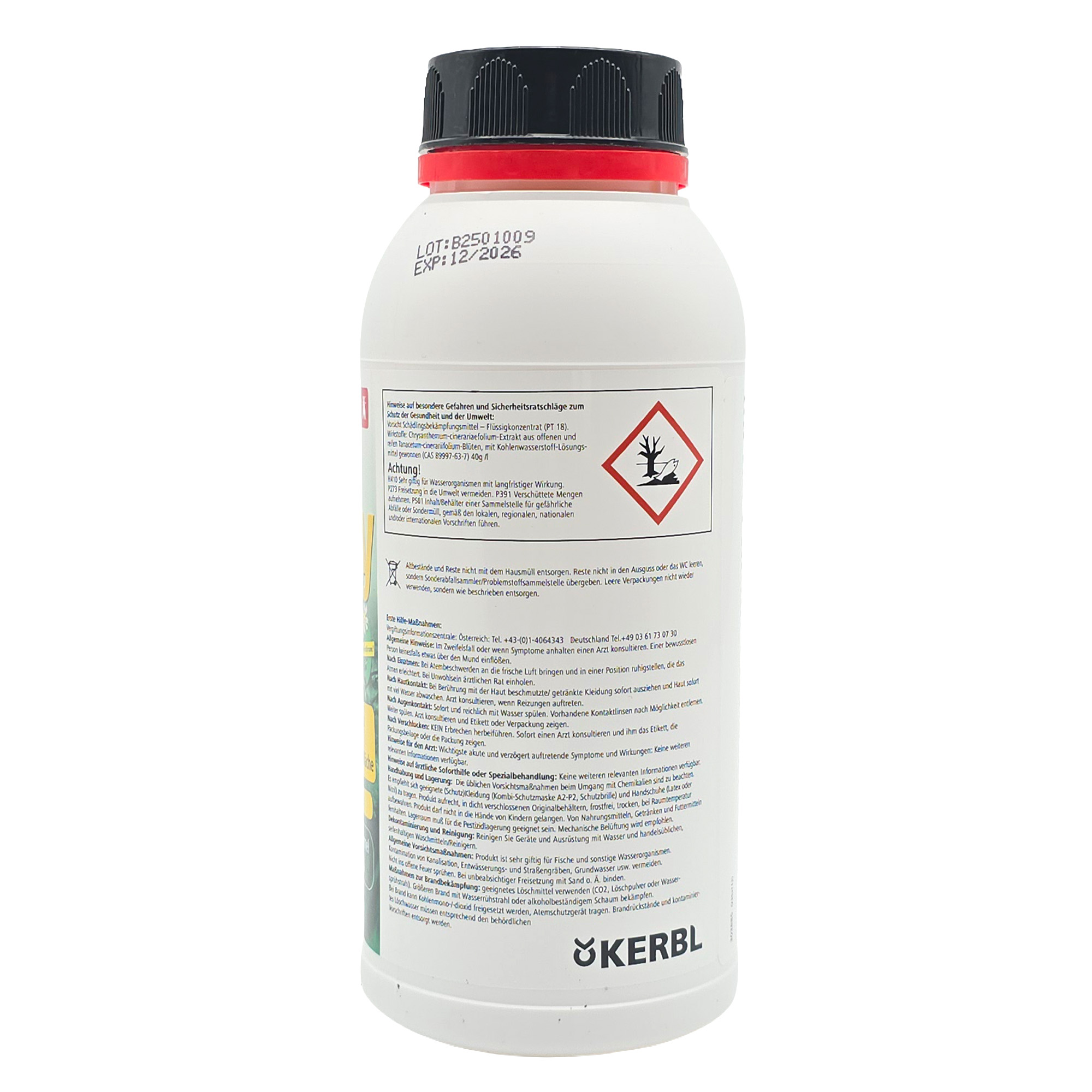 - Wirkstoff: Pyrethrum (Crysanthemum-Pflanze)