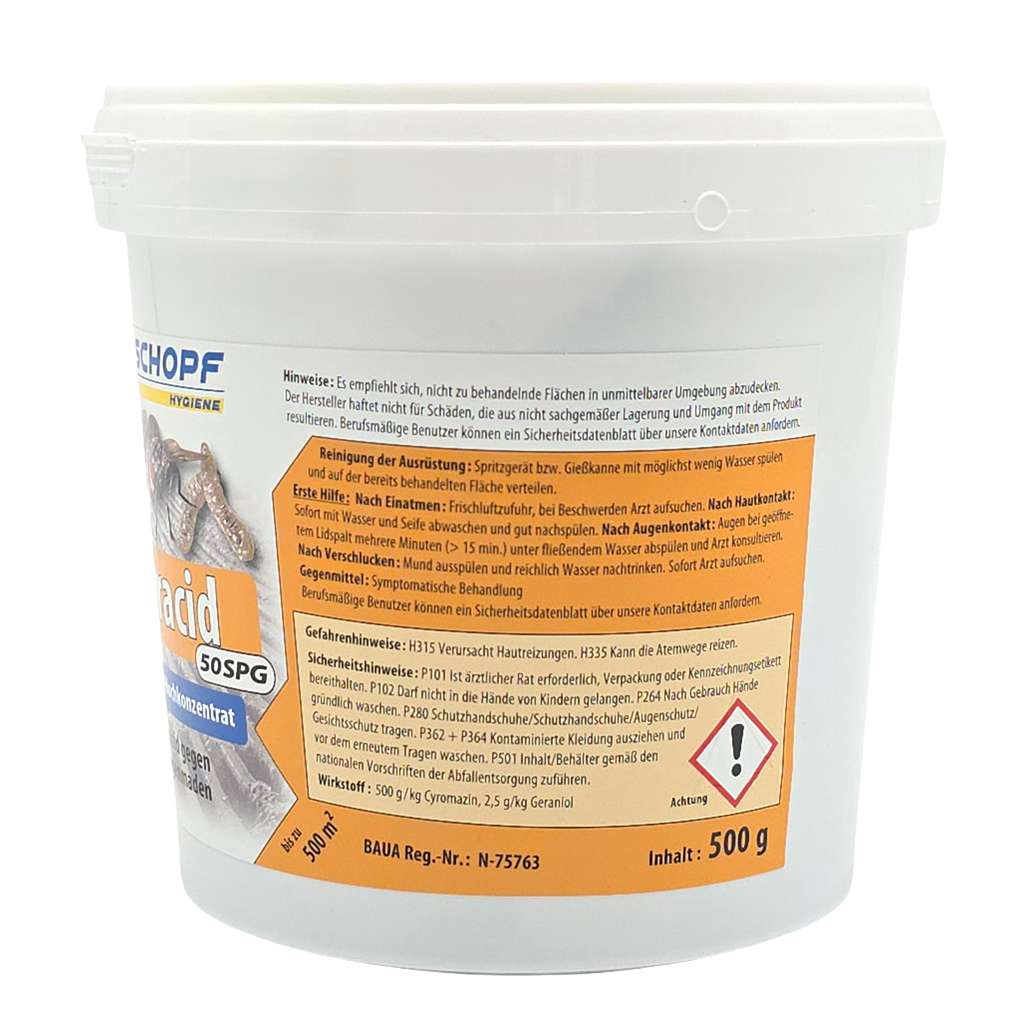 - Wirkstoff: Cyromazin, Geraniol, 50 SP