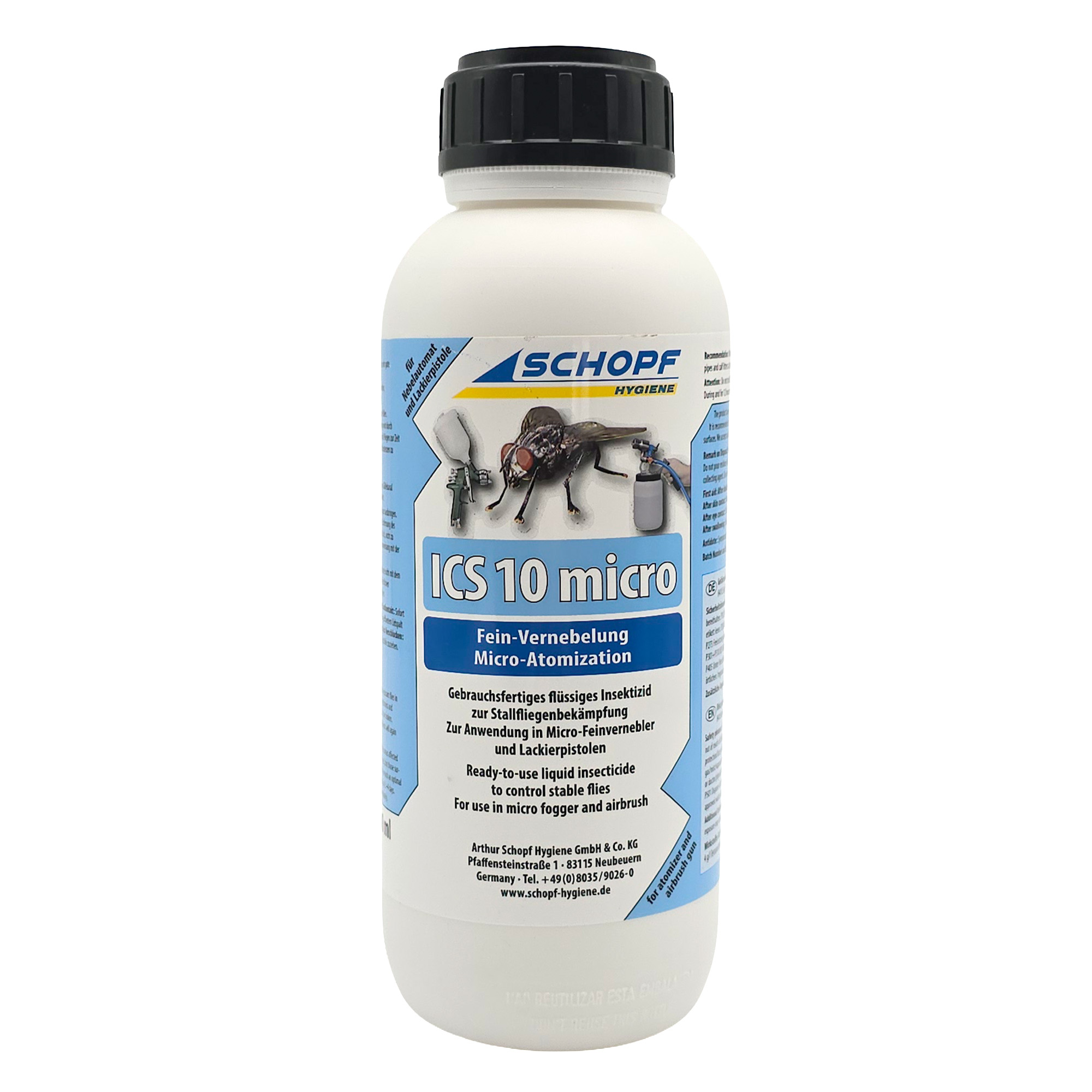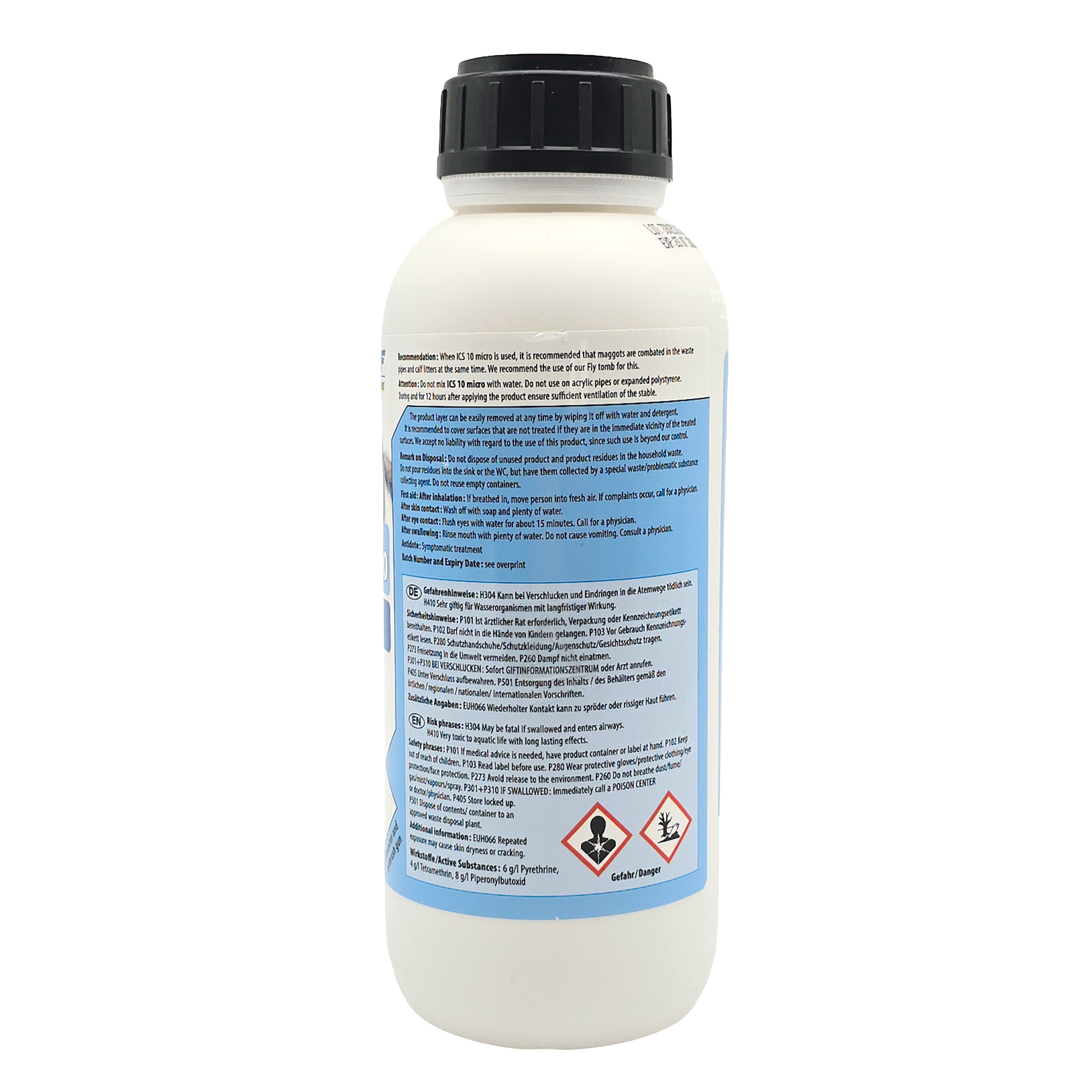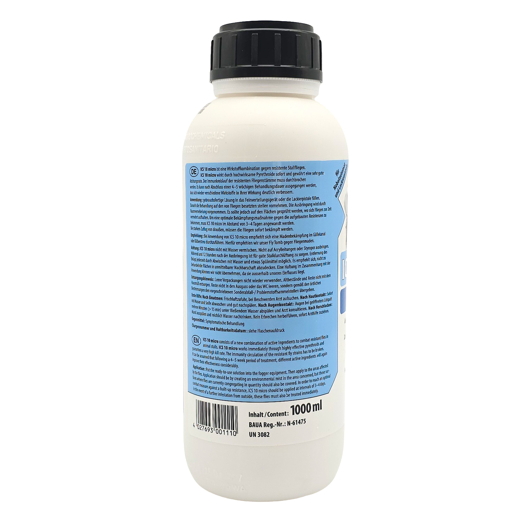 - ICS 10 micro, ein hochkonzentriertes gebrauchsfertiges Stallfliegen-Bekämpfungsmittel.
