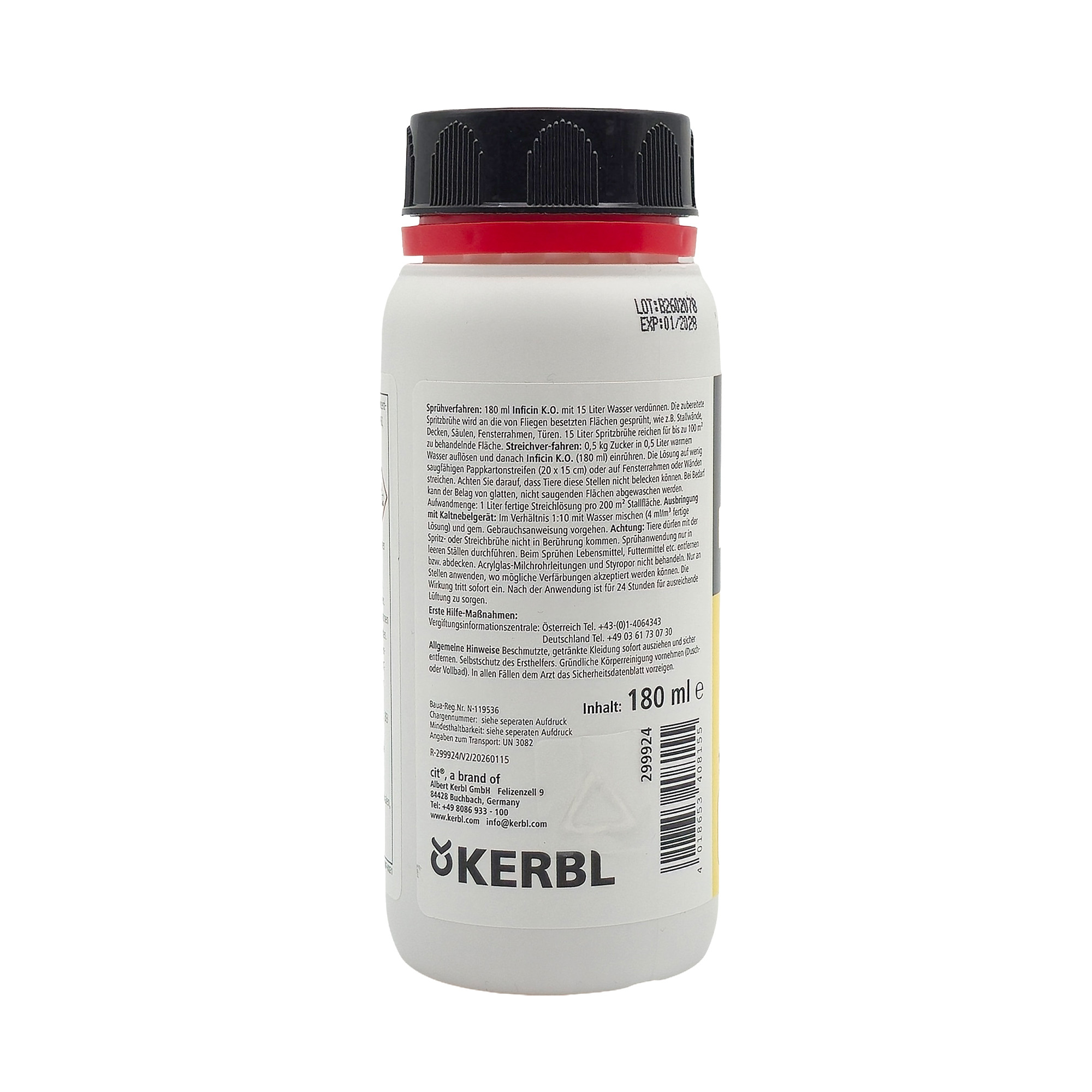 - Sprühverfahren: 180 ml mit 15 Liter Wasser verdünnen. Die zubereitete Spritzbrühe reicht für bis zu 100 m² zu behandelnde Fläche (ca. 200 m² Stallgrundfläche).