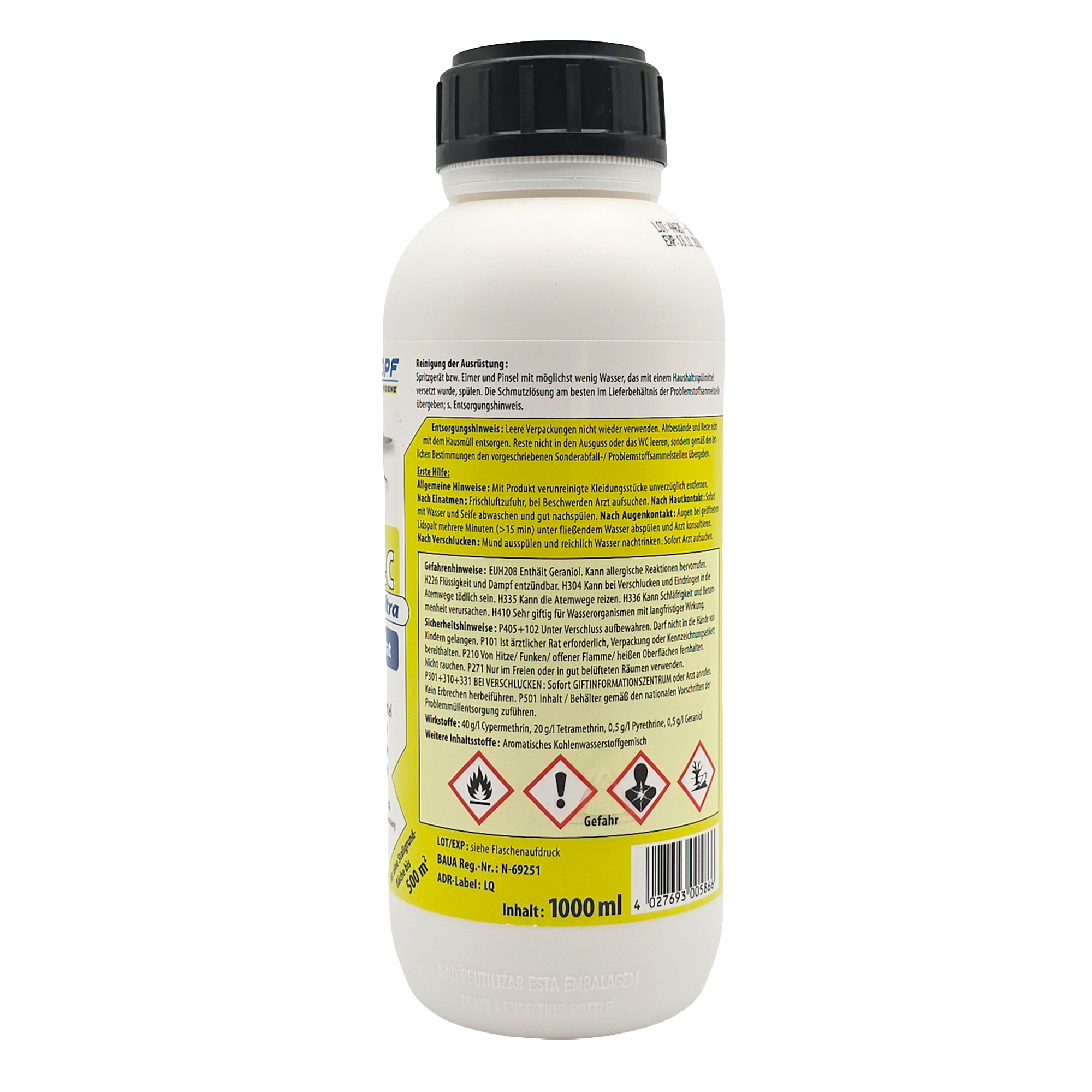 40 g/l Alpha-Cypermethrin, 20 g/l Tetramethrin, 0,5 g/l Pyrethrine, 0,5 g/l Geraniol