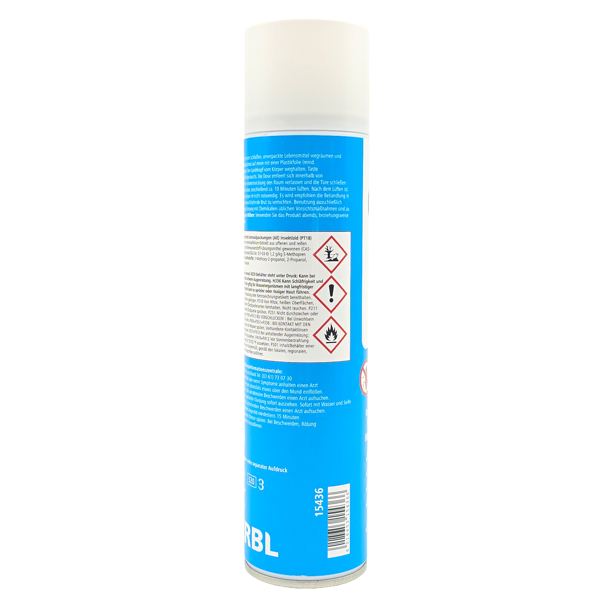 - Nebeldose aufstellen, Taste drücken, Raum sofort verlassen und erst nach 6 Stunden öffnen, durchlüften und Raum sogleich normal benützen.